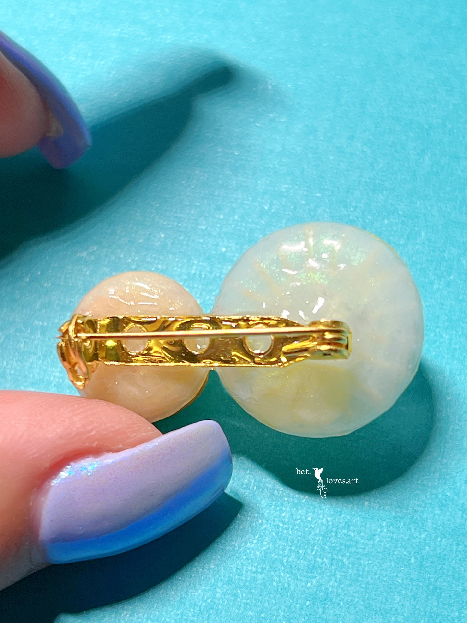 “Tea please” brooch made in resin and air dry clay